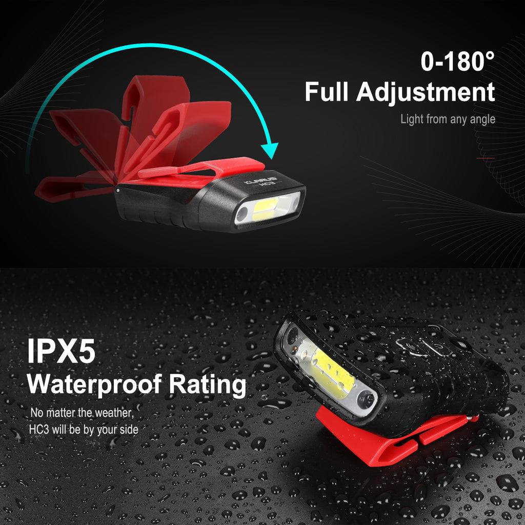With a 180° adjustable clip, it is possible to precisely direct where the light from the Klarus HC3 is aimed. Thanks to a wide area spotlight, this headlamp can produce wider beams for a softer illumination that is easy on the eyes while simultaneously making it easier to see everything.